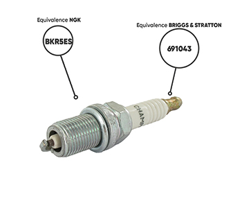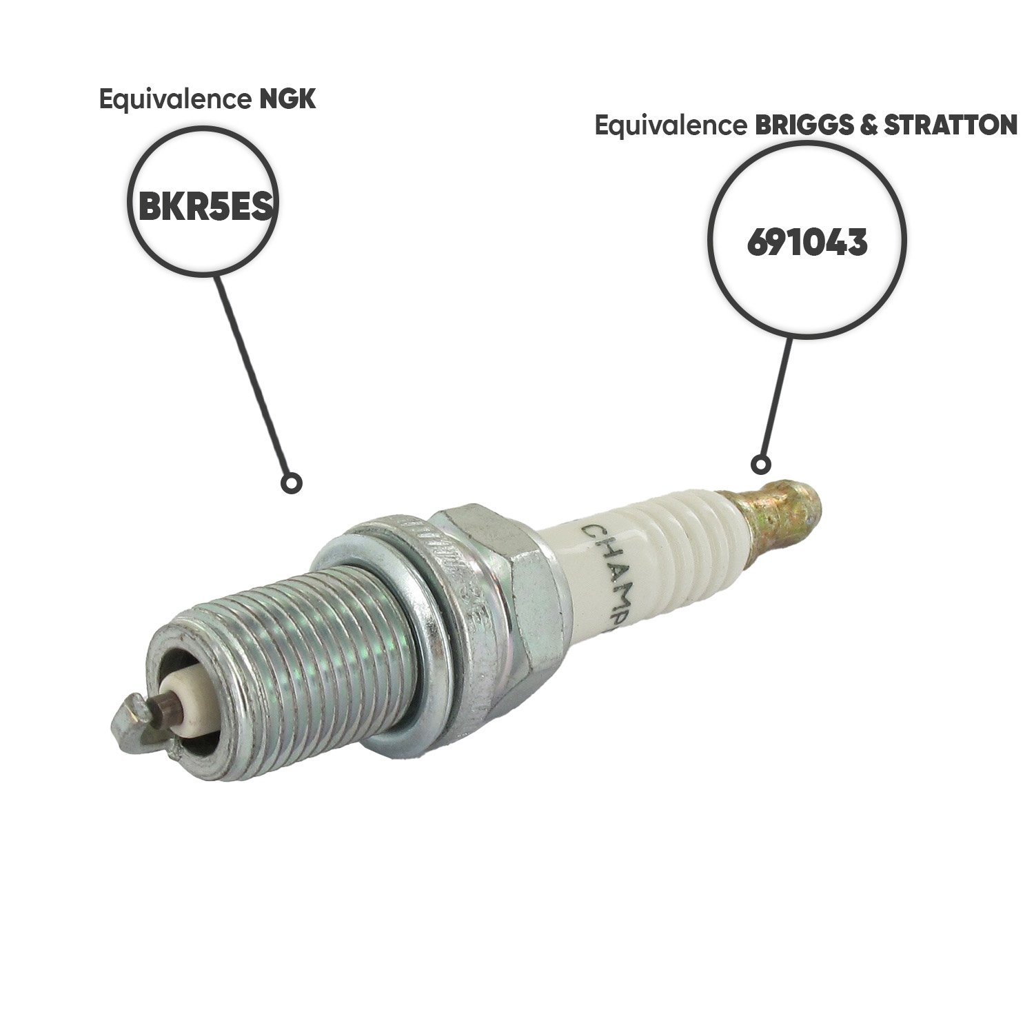 Bougie d'allumage CHAMPION QC12YC. Equivalent NGK BKR5ES, NGBKR5ES. Equivalent B&S 691043.