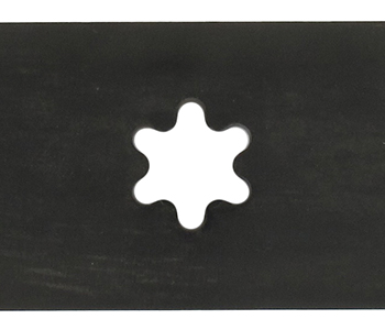 Lame tondeuse rotation à gauche, soufflante + mulching adaptable AYP - ELECTROLUX - HUSQVARNA pour machine CT131, CT141, CT151, CT153, CT154, CTH140 Twin, CTH141, CTH151, CTH163T, CTH171, CTH173, CTH191, CTH2038, CTH2238TE, LTH152, tondeuse autoportée AYP 97cm à éjection arrière depuis 2010 - L: 499mm, alésage central: étoilé 6 pointes, entraxe: 245mm. Remplace origine 427985, 5324279-85.