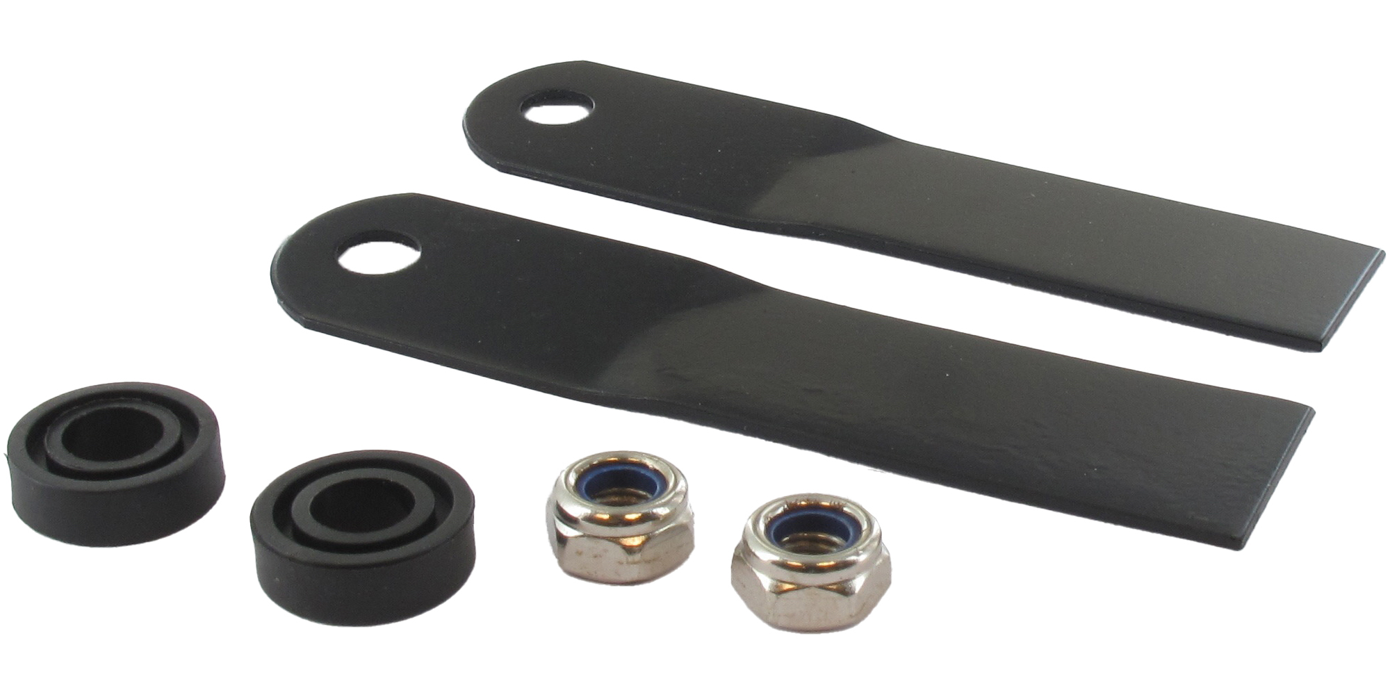Jeu de deux lames adaptables 114mm HUSQVARNA - KLIPPO avec 2 écrous et 2 rondelles. Se monte sur notre 1102315. Remplace origine 5030973-01.