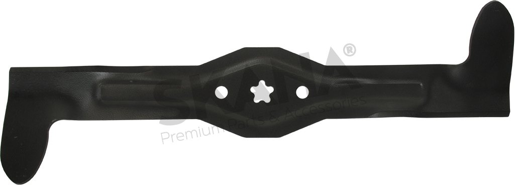 Lame supérieure gauche rotation à droite, adaptable pour tondeuses autoportées AYP, BERNARD, ELECTROLUX - HUSQVARNA et JONSERED - Coupe 107 cm - L: 542mm, alésage central: étoilé 5 pointes, entraxe: 84mm. Remplace origine: 180583, 532180583, 150583, 168710, 168720, 175450, 175792.
