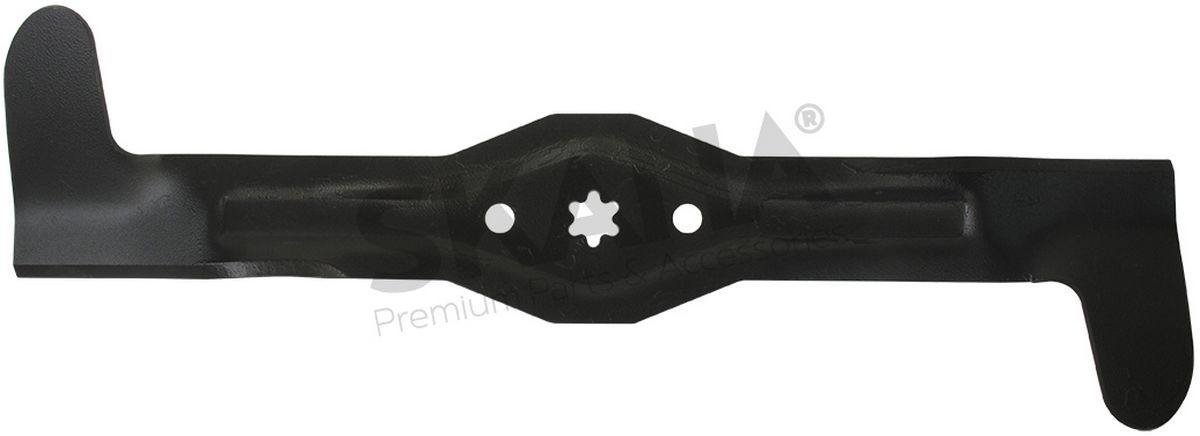 Lame supérieure droite rotation à gauche, adaptable pour tondeuses autoportées AYP, BERNARD, ELECTROLUX - HUSQVARNA et JONSERED - Coupe 107 cm - L: 542mm, alésage central: étoilé 6 pointes, entraxe: 84mm. Remplace origine: 168721, 175451, 180584, 175793, 532180584.
