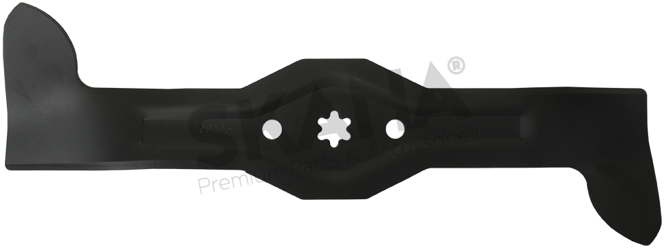 Lame supérieure droite rotation à gauche, adaptable pour tondeuses autoportées AYP, BERNARD, ELECTROLUX - HUSQVARNA et JONSERED - Coupe 92 cm - L: 465mm, alésage central: étoilé 6 pointes, entraxe: 86mm. Remplace référence d'origine: 186386, 532186386