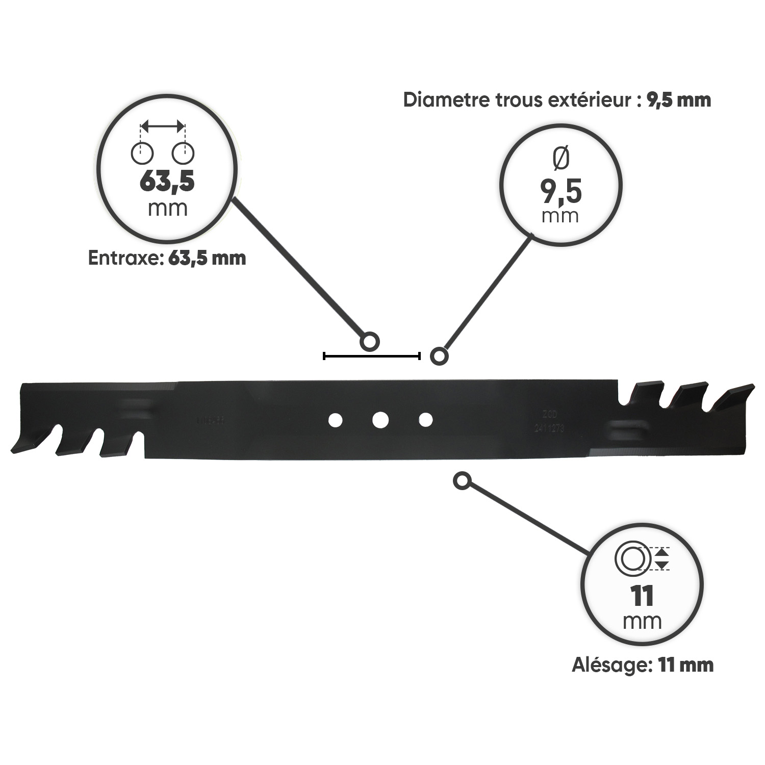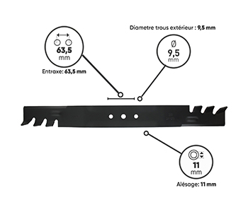 Lame pour tondeuses TORO modèles RECYCLER 20001, 20003, 20005, 20008, 20009, 20012, 20013, 20014, 20016, 20017, 20018, 20019, 20041, 20049, 20064, 20065, 20067, 20068, 20070, 20071, 20072, 20073, 20074, 20076, 20079, 20086, 20087, 20094, 20098, 20110, 20111, 20112, 20113, 20330, 20331, 20332, 20333, 20655, 20658, 20954, 20955, 20956, 20958. L: 550mm. Remplace origine 108-9764-03, 108-9783-03, 131-4547-03, 131-9683-03.