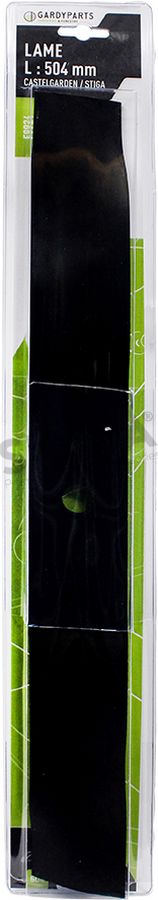 Lame mulching adaptable pour tondeuse CASTELGARDEN pour modèle Variolux 53BCAH, HONDA et STIGA - L: 504mm, alésage central: 18,3mm, entraxe: 65mm. Remplace origine: 81004381/1, 181004381/1, 1111-9726-01. (sous coque).