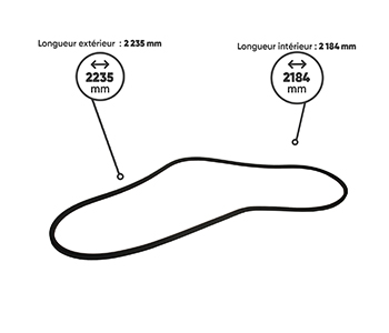 Courroie lisse hexagonale série AA Longueur ext: 2235mm.