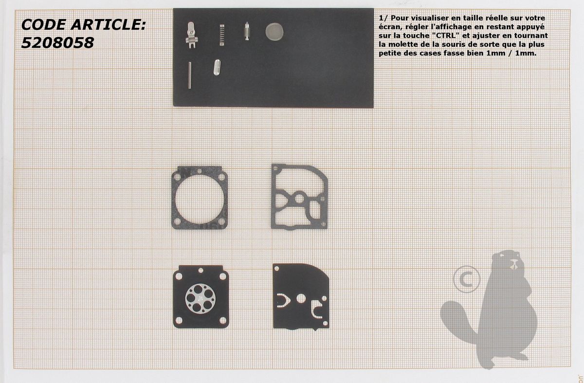 Kit réparation adaptable pour STIHL modèles BG45, BG65, BG85, HT75, HL75, PH75, FC75, HS81, HS86. Remplace origine ZAMA RB-99 sur carburateurs type C1Q (S68/S105/S111/S115/S116).