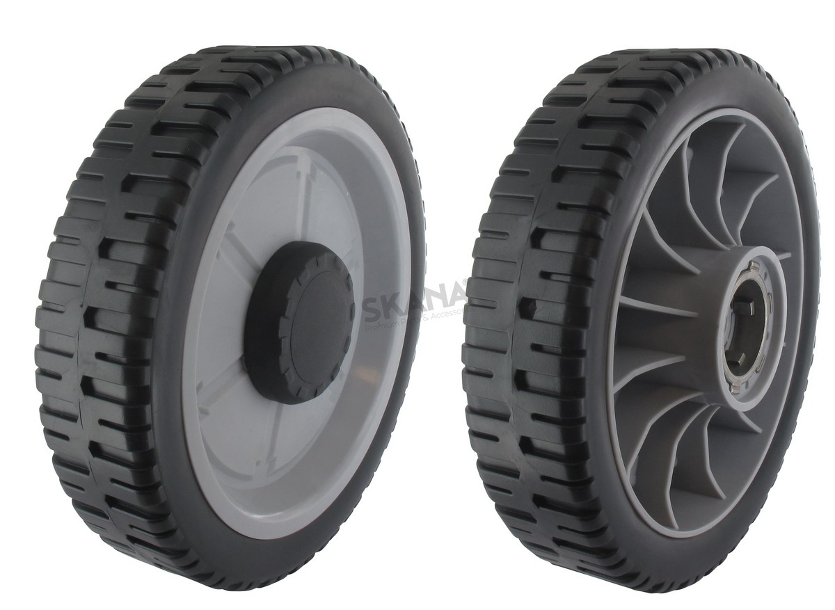 Roue plastique adaptable KAAZ - OREC pour modèles LM480, LM485, LM530, LM535KX. Diamètre 200 mm, alésage 15 mm. Fournie avec pignon.
