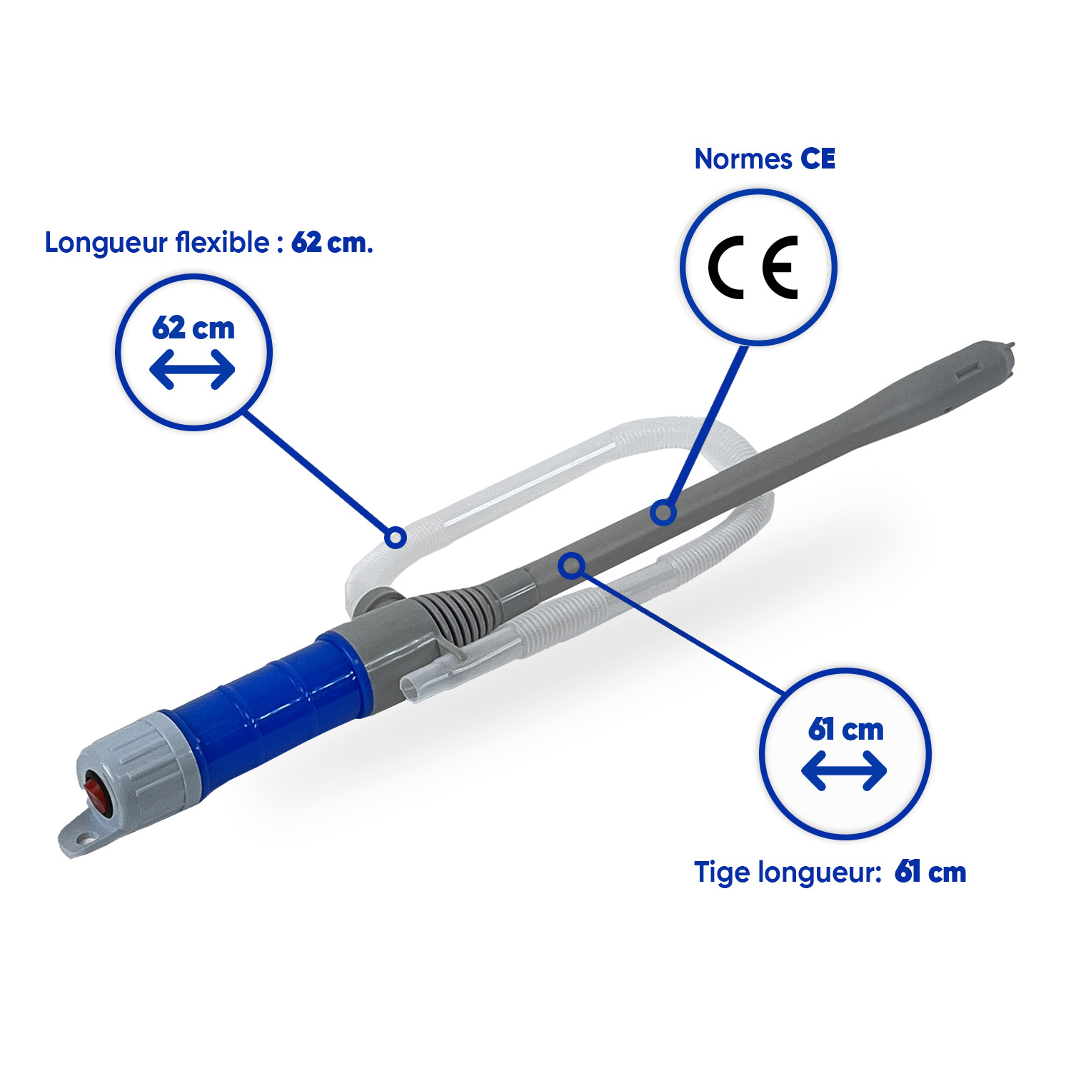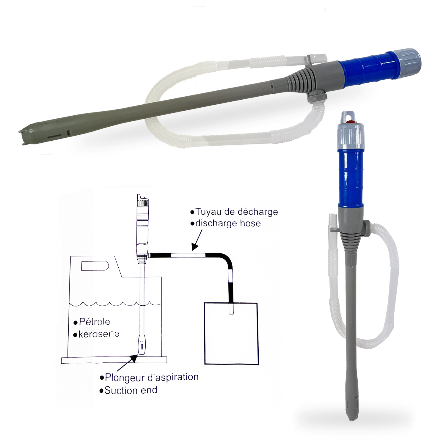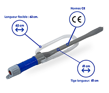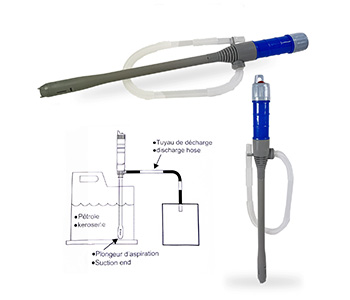 Pompe électrique pour remplissage ou vidange d'un contenant. Compatible tous fluides non corrosifs (pétrole, kérosène, eau). Fonctionne avec 2 piles LR20 (D) non fournies.
