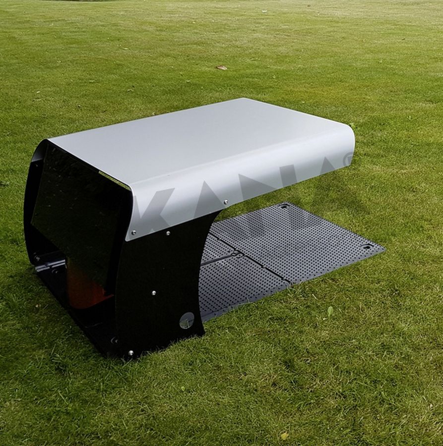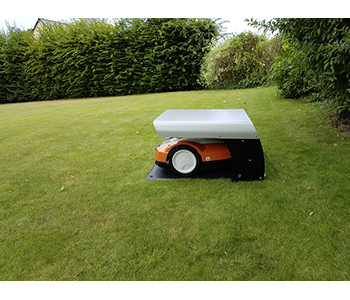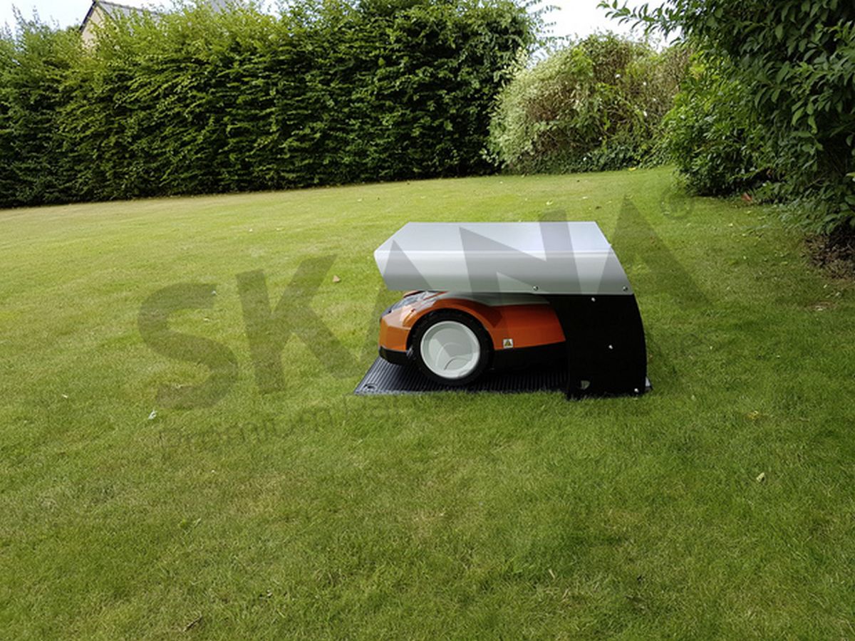 Abri pour tondeuse ROBOT PROTECT. Ouverture à deux positions permettant un accès optimal au robot et à l'abris. Compatible avec de nombreuses marques de robots tondeuses. Idéal pour les robots avec sortie arrière et latérale. Accès facile à la base, à la station de charge et au robot. Couverture stable contre la pluie, le soleil et autres influences extérieures. Montants noirs et couverture grise. Fabriqué en France. Spécifications : Hauteur maximale du robot 37 cm - Longueur 65 x Largeur 65 x Hauteur 40 cm - Poids 6 kg - Base INOX, matériau composite recouvert d'une feuille d'aluminium (Alu-Dibond). ->PL