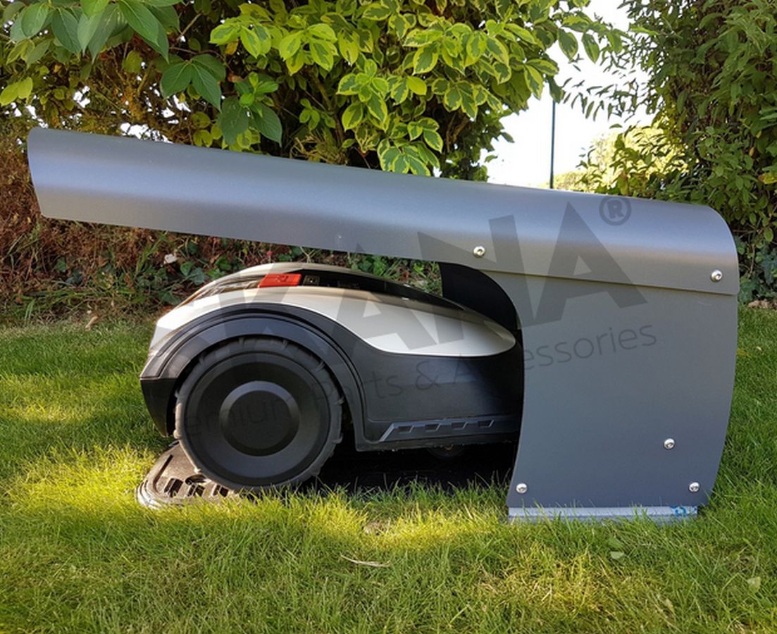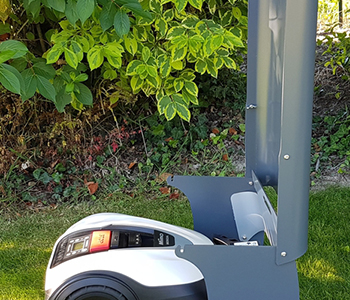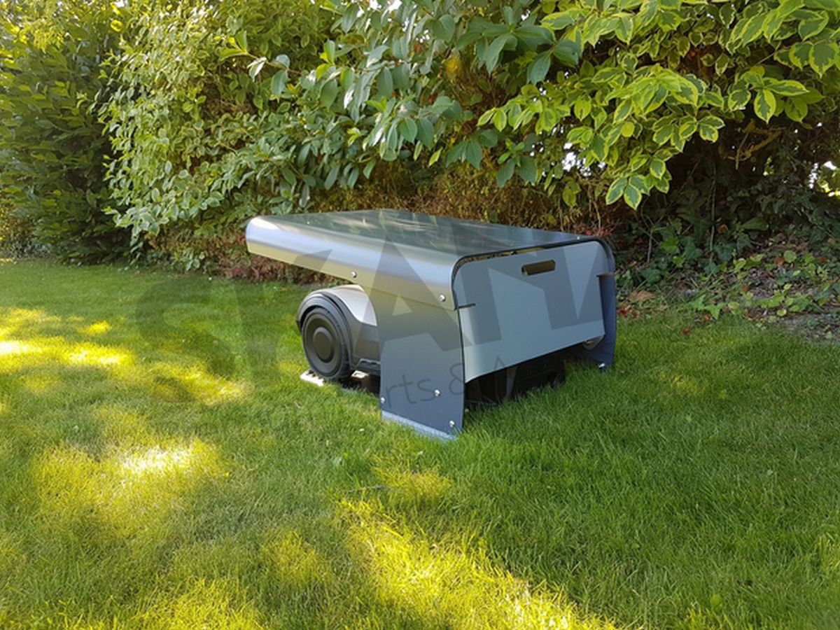 Abri pour tondeuse ROBOT PROTECT. Pour petits et modèles de moyenne taille. Compatible avec de nombreuses marques de robots tondeuses. Idéal pour les robots avec sortie arrière et latérale. Accès facile à la base, à la station de charge et au robot. Couverture stable contre la pluie, le soleil et autres influences extérieures. Gris anthracite. Fabriqué en France. Spécifications : Hauteur maximale du robot 29 cm - Longueur 60 x Largeur 40 x Hauteur 30 cm - Poids 4 kg - Base INOX, matériau composite recouvert d'une feuille d'aluminium (Alu-Dibond). ->PL