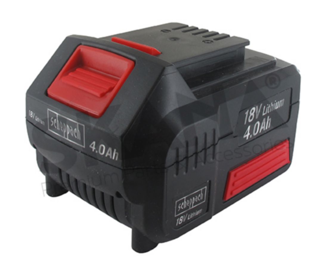Batterie lithium/ion 18V 4,0Ah SCHEPPACH pour tondeuses LMB400, GS18-3Li, TT40-Li18V, coupe bordures RT2300, taille haies HTB400. Origine 7910303707. Remplace origine 7910303701.