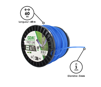 Bobine fil nylon carré OZAKI - Longueur: 60m, Ø: 3,00mm