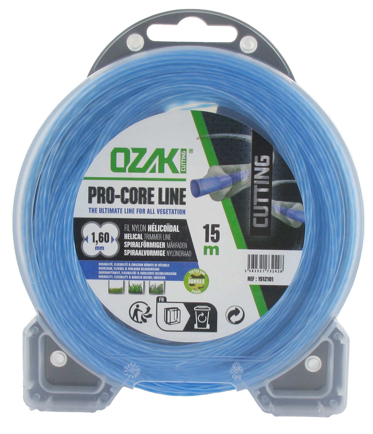 Coque fil nylon OZAKI PRO-CORE LINE. Co-extrudé âme absorbante (flexibilité) et enveloppe haute resistance (longévité) à forme helicoidale (réduction du bruit) - Longueur: 15 m, Ø: 1,60mm.