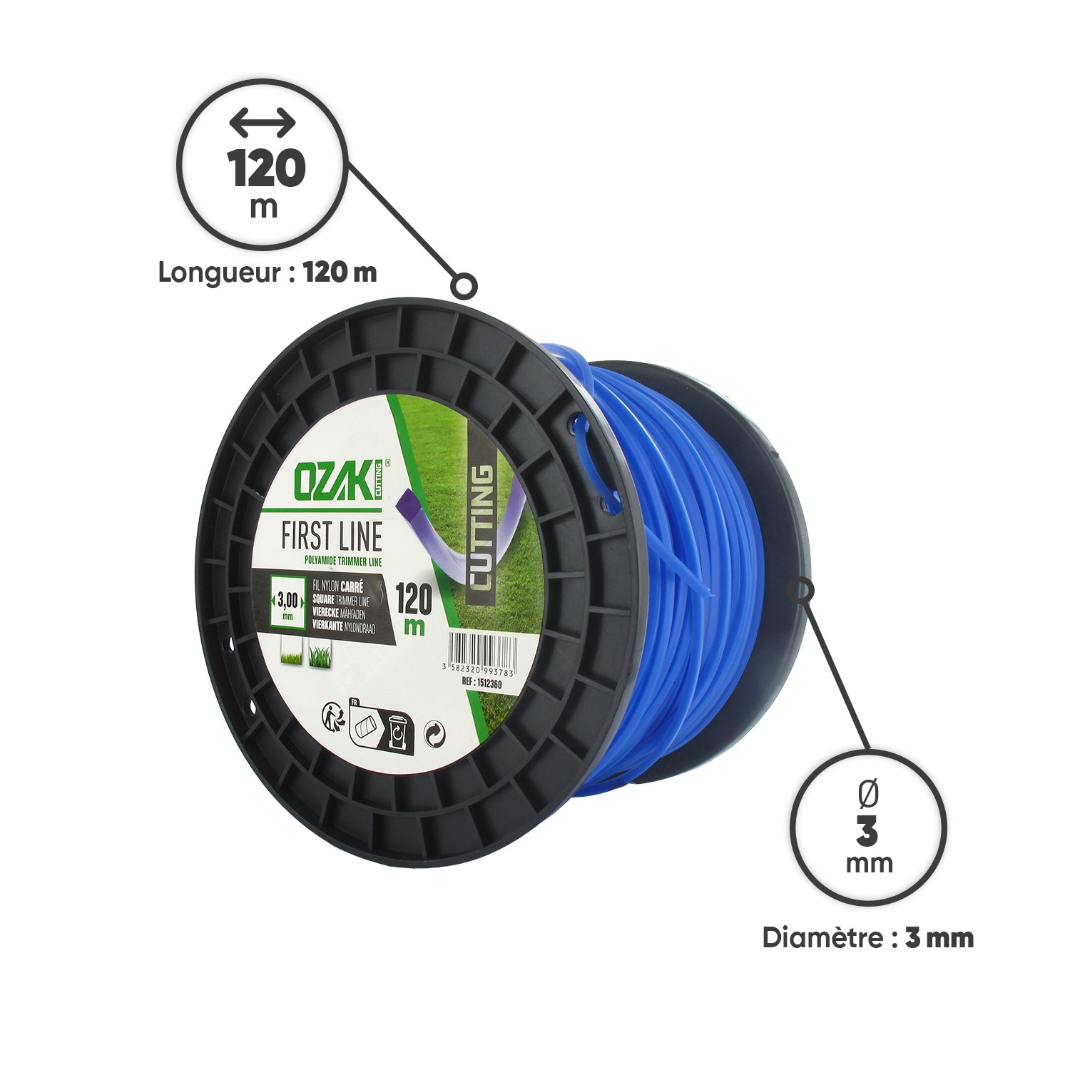 Bobine fil nylon carré OZAKI - Longueur: 120m, Ø: 3,00mm