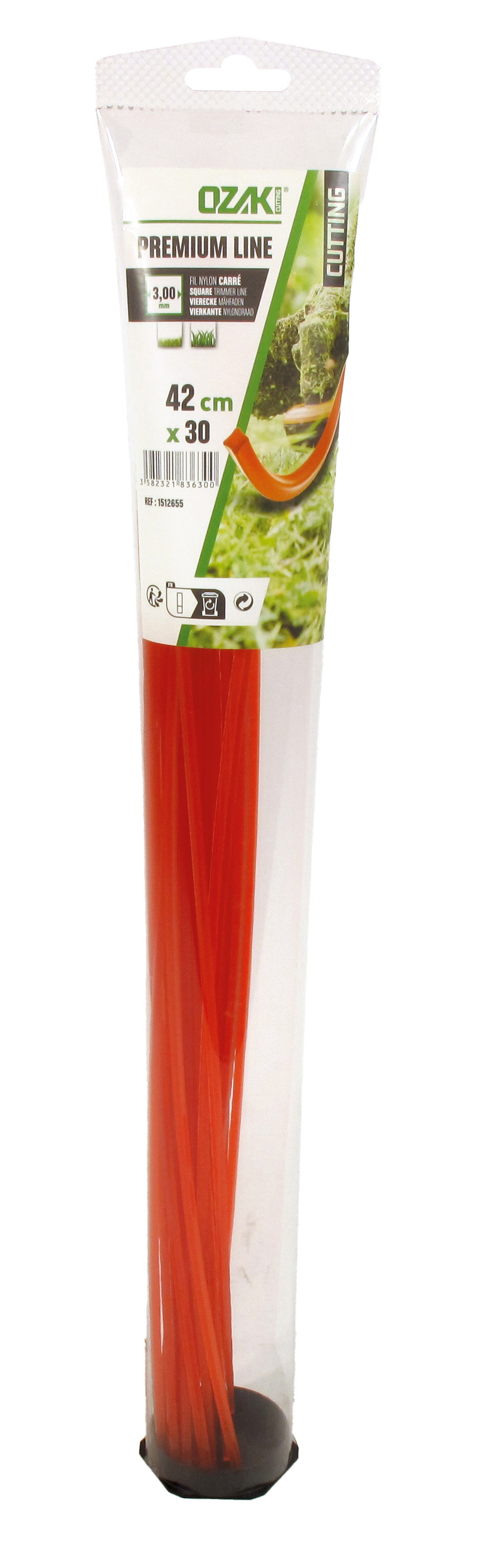 Tube 30 brins fil nylon carré OZAKI PREMIUM - Longueur: 42 cm, Ø: 3,00 mm.