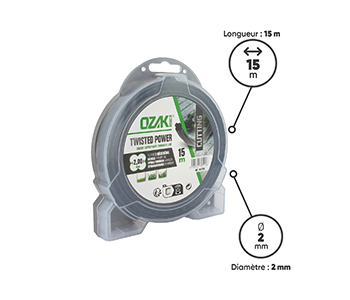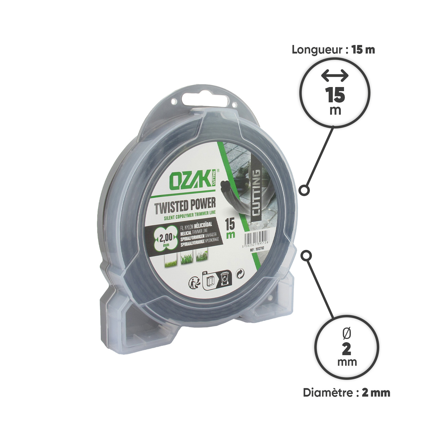 Fil nylon hélicoïdal OZAKI TWISTED POWER SILENT LINE, Ø: 2,0mm, L: 15m.