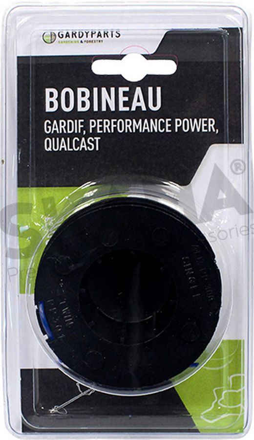 Bobineau adaptable pour coupe bordure B&Q modèles PWR300GTB twin line (2004-2005), B&Q Triple Pack TRY250SGTD - GARDIF modèles: GT2501, GT2505, GT2518, GT3515, MAC911031, CLCH700E - KINZO 250 - MAC ALLISTER modèle MGTP300P - PERFORMANCE POWER PWR300GTB, TRY250SGTD Sortie 2fils (2004-2005) - QUALCAST modèles GGT3001, GT2518, GT2518X et WORX modèles: WG110E(350W), WG106E, WG114E. Remplace origine GE01GT.31.00 (sous coque)