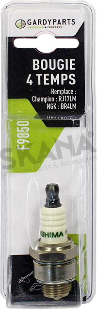 Bougie d'allumage adaptable sous coque remplace RJ17LM, LR17A - NGK: BR4LM adaptable sur moteur 4 temps vilebrequin horizontal Tecumseh. Voir données constructeur.