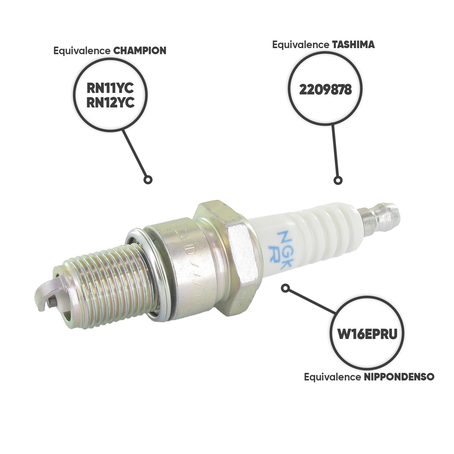 Bougie d'allumage NGK BPR5ES. Equivalent CHAMPION RN11YC, RN12YC, CHRN11YC, CHRN12YC, TASHIMA 2209878, NIPPONDENSO W16EPRU.